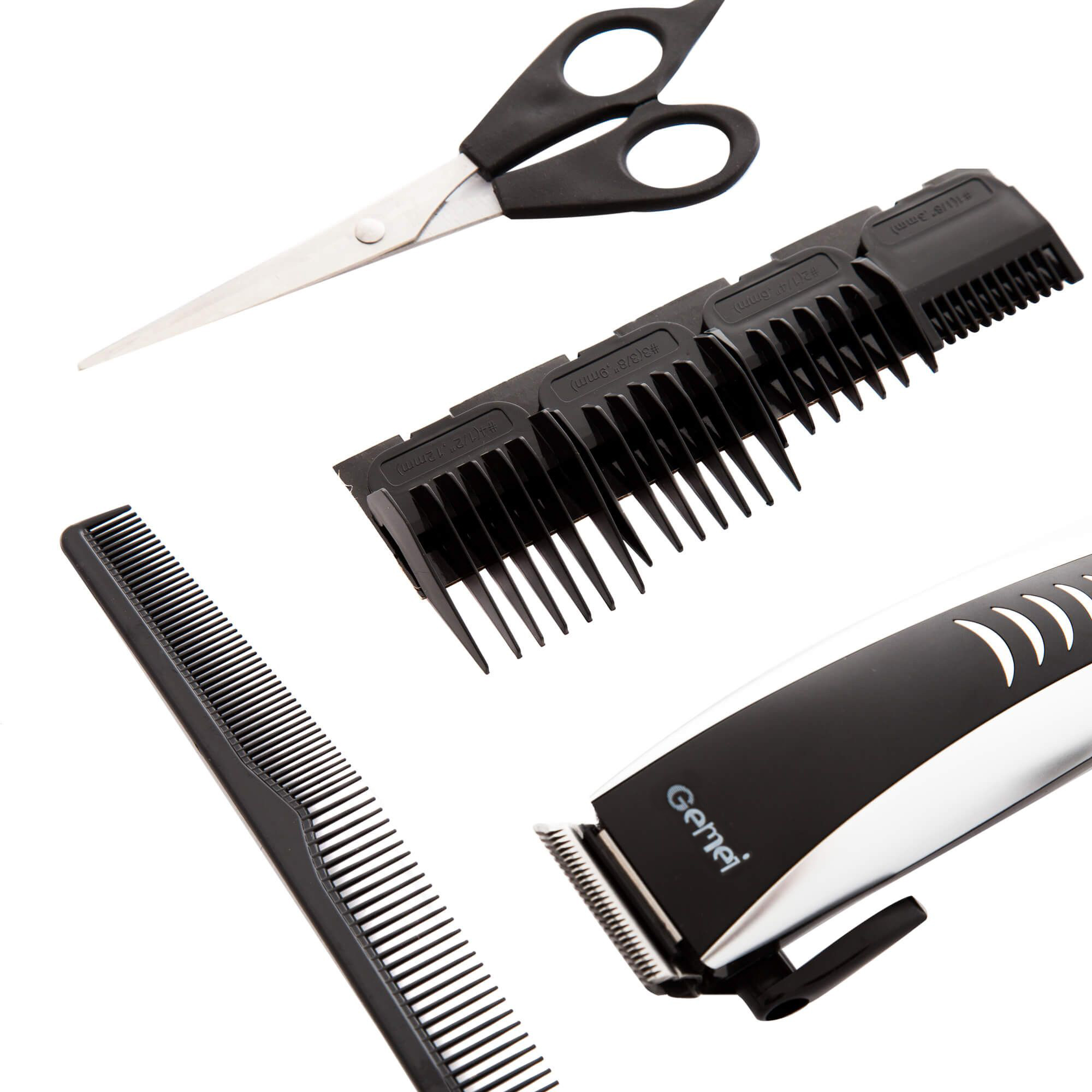 Aparat De Tuns Profesional Gemei , Electric Cu Cablu, Foarfeca Inclusa , Tip 3-1 , Putere De 12 W, Lame Din Otel Inoxidabil , Stabilitate Sporita , Ajustari Pe 4 Marimi De Tuns , Buton On/off , Argintiu-negru