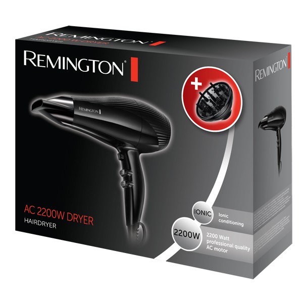 Uscator De Par Profesional Remington Cu Motor Ac Cu Putere 2400 W,functie Generator De Ioni,functie Anti-static, 3 Nivele De Temperatura Si 2 Nivele De Viteza,concentrator Subtire 7mm, Cablu De 3 M, Negru