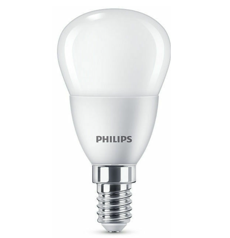 Bec Led Philips P45, Alb Cald, Tip Soclu E14, Putere 6.5 W (48w), Flux 620 Lm, 15000 Ore, 4500 K, Forma Lustra, Compact, Culoare Alb