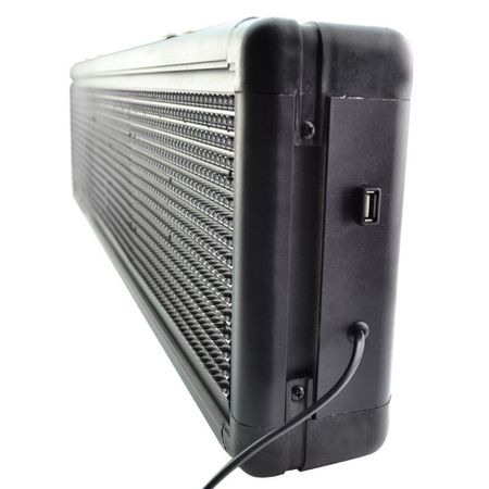 Panou afisaj reclama tip caseta luminoasa cu LED-uri de culoare ROSU, programabil prin calculator (soft programare inclus, conectare la calculator prin USB) . Se pot afisa texte sub diferite fonturi, logo-uri, embleme.Pot fi create animatii cu textele afisate.