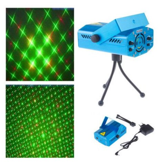 Acest mini proiector de lumini cu laser este dispozitivul ideal pentru petreceri, deoarece jocurile luminoase create sunt spectaculoase.