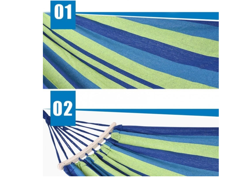 Fabricat din material de cea mai buna calitate, bumbac dens, este rezistent la multiple utilizari pentru o perioada lunga de timp. Greutatea maxima pentru acest hamac este de 150 kg.