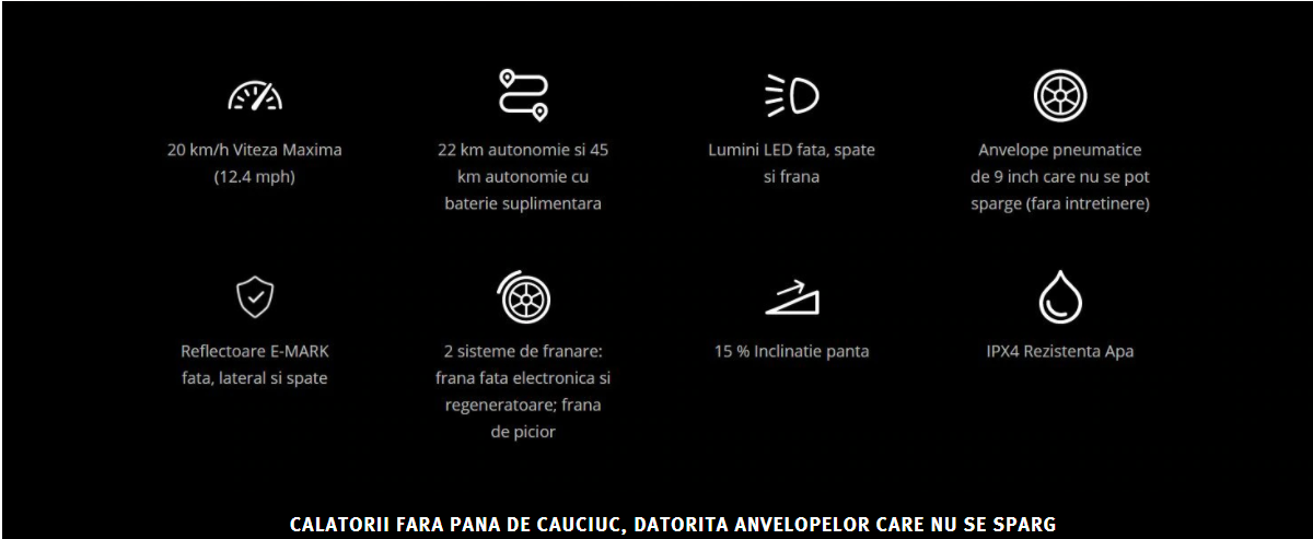 15 km/h cu autonomie extinsa de aproximativ 22 km