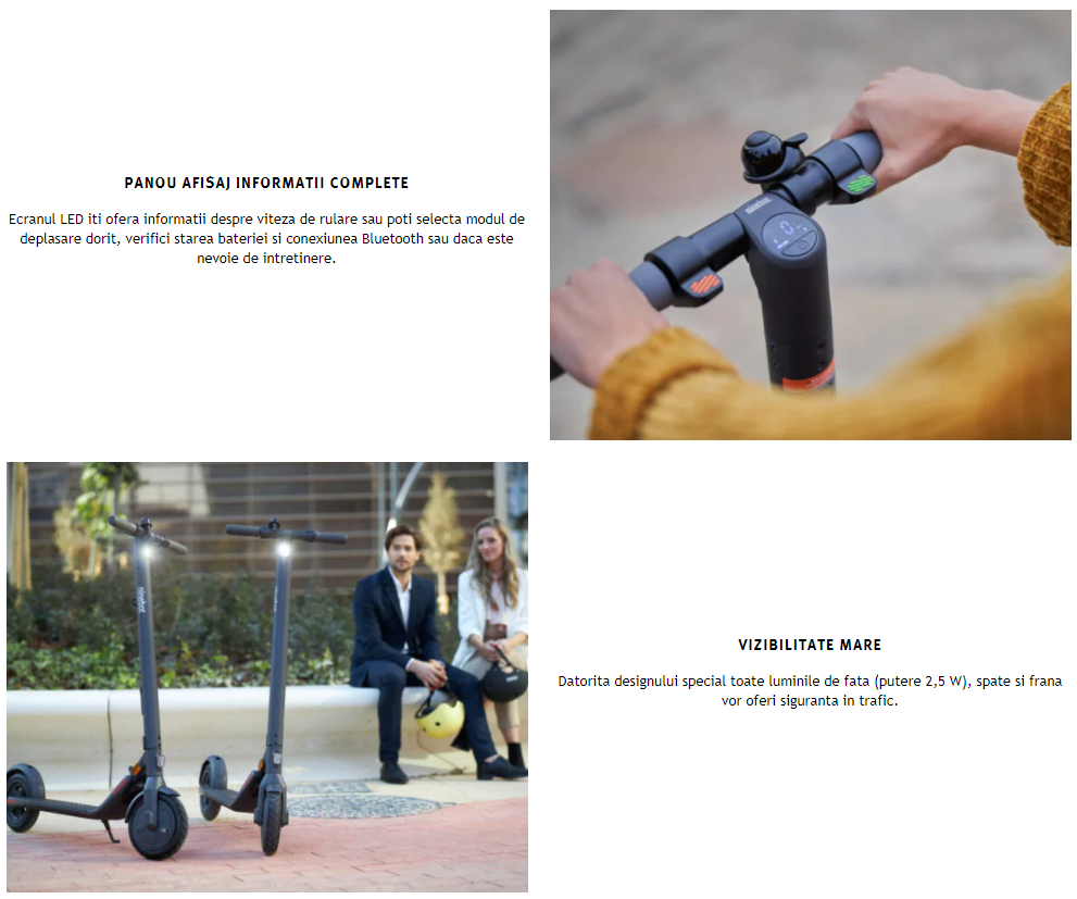 - ecran LED (indicare viteza, nivel de incarcare, mod de conducere, intretinere,