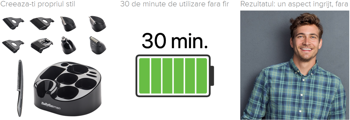 Set Tuns Si Ras 8 Accesorii, 2 Capete, Indicator Led, Lame Otel, Suport Incarcare, 4 Ghidaje De Taiere, Autonomie 30 Min, Negru