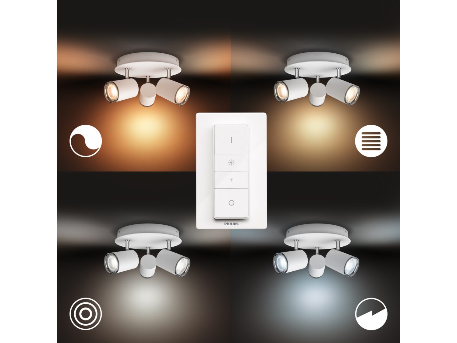 Aceste becuri si instalatii de iluminat ofera diferite nuante de lumina alba calda pana la rece. Datorita reglabilitatii complete de la lumina stralucitoare la lumina de veghe estompata, puteti regla luminile la luminozitatea si nuanta perfecte pentru necesitatile dvs. zilnice.