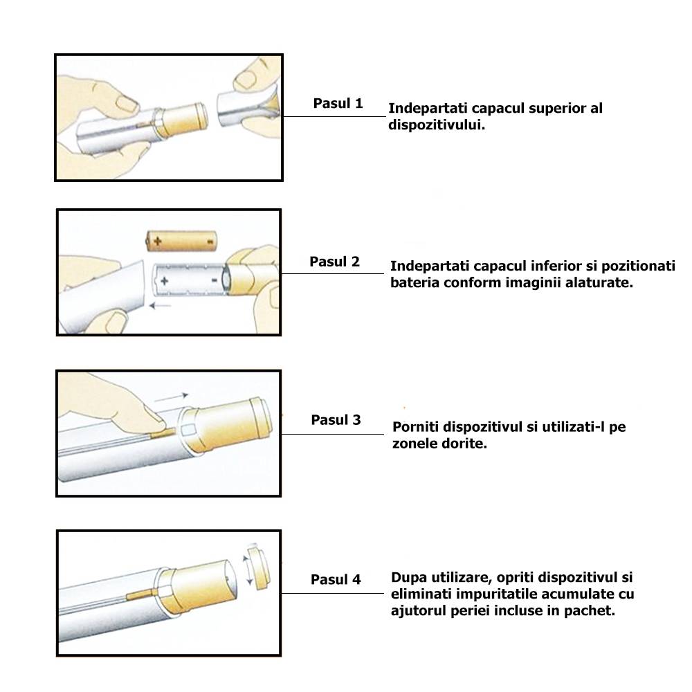 Epilator Facial Profesional Klausstech Pentru Indepartarea Parului, Hipoalergenic, Functioneaza Cu 1 X Baterie Aa, Lumina Led Incorporata, Design Modern Si Subtil, Compact, Alb