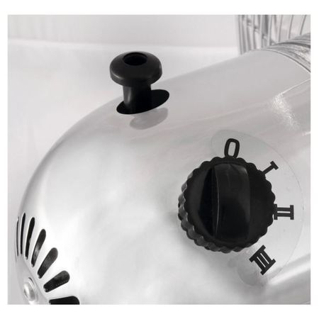 Ventilatorul de aer are o putere maxima de 35 W si functioneaza prin alimentare la orice priza standard de perete cu tensiunea de 230V/50Hz. In interior ventilatorul este prevazut cu palete metalice avand diametrul de 30 cm.