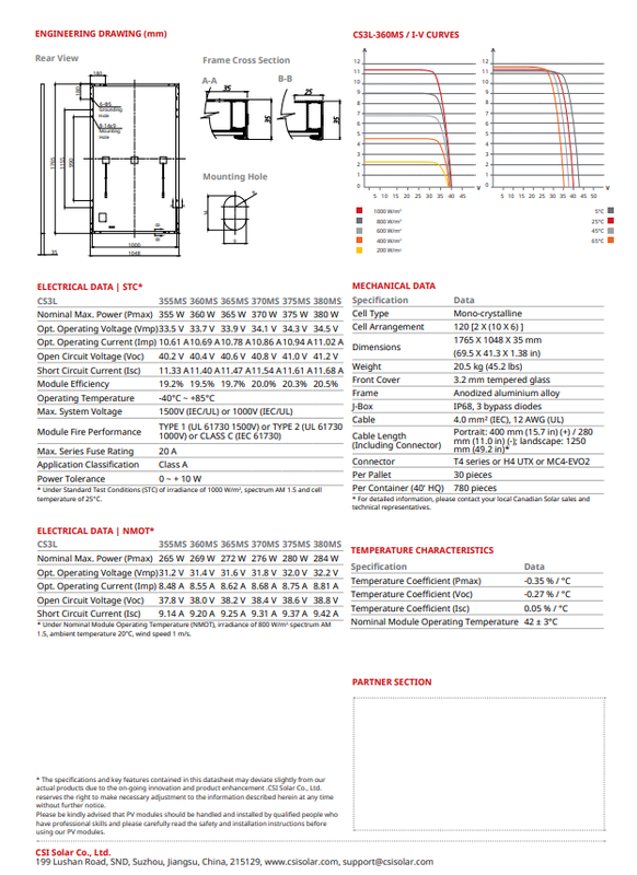 Panou Solar Fotovoltaic, Dimensiune 1765 X 1048 X 35 mm, IP68, 380W, Negru