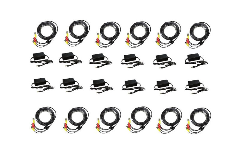 Set De 12 Kit-uri Cu Accesorii Pentru Sistemul De Supravegheat, Pentru 12 Camere, Alimentator 12v 2a, Cablu De Mufat Plug&play De 10m, Negru