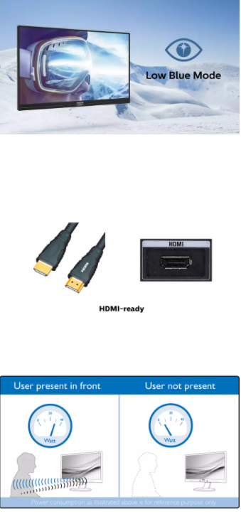 Studiile au demonstrat ca, asa cum razele ultraviolete pot cauza leziuni oculare, si razele de lumina albastra cu lungime redusa de unda provenite de la afisajele cu LED-uri pot cauza leziuni oculare si pot afecta vederea in timp. Dezvoltata pentru confort, setarea de mod LowBlue de la Philips utilizeaza o tehnologie software inteligenta pentru a reduce lumina albastra daunatoare, cu lungime de unda redusa.