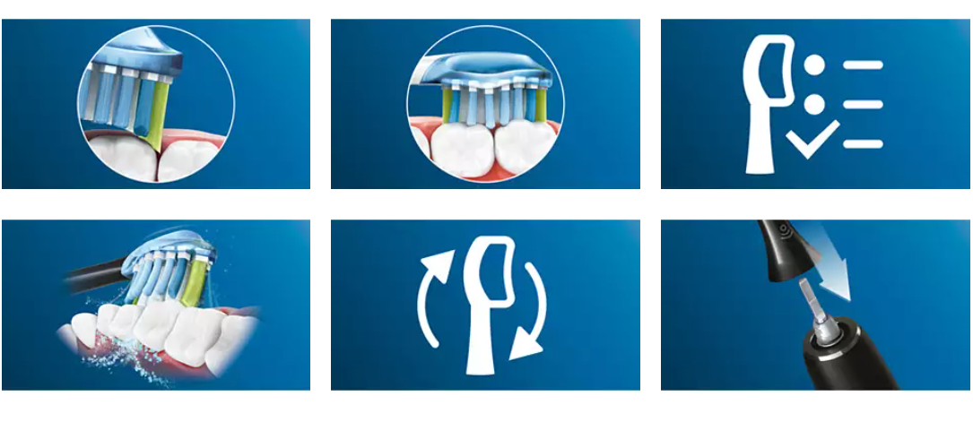 Tehnologia sonica avansata Philips Sonicare mobilizeaza apa intre dinti, iar miscarile sale de periere desprind si indeparteaza placa bacteriana pentru o curatare zilnica exceptionala.