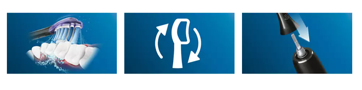Tehnologia sonica avansata Philips Sonicare mobilizeaza apa intre dinti, iar miscarile sale de periere desprind si indeparteaza placa bacteriana pentru o curatare zilnica exceptionala.