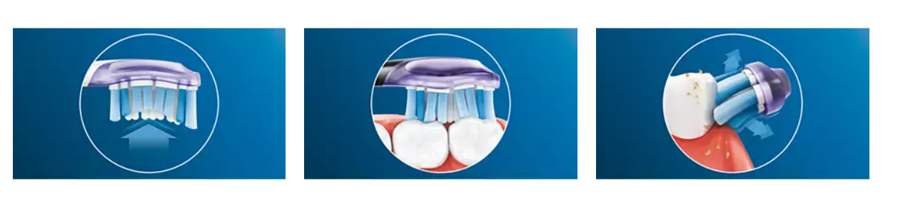 Indepartare de pana la 10 ori mai buna a placii bacteriene comparativ cu o periuta de dinti manuala