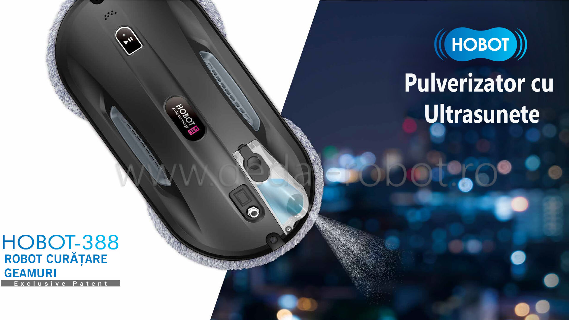 HOBOT 388 este un robot potrivit pentru curatarea geamurilor. Hobot 388 vine cu îmbunatatiri - un recipient cu apa, un nou design, software de curatare îmbunatatit, conectivitate robot-cablu mai buna, un motor fara perii si multe altele.