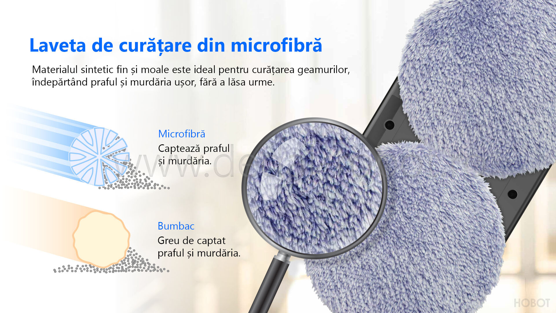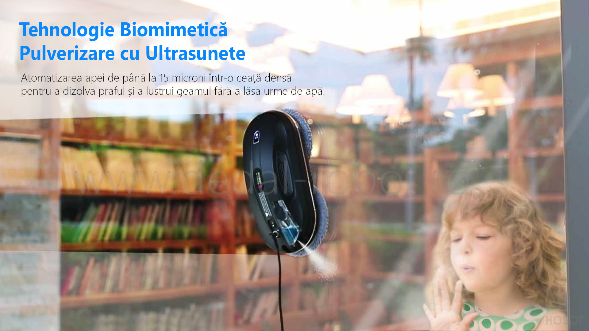 * Va recomandam sa utilizati mai întâi robotul cu curatare chimica pentru a colecta praful de pe geamuri. Dupa ce praful este colectat, puteti pune mopuri noi si puteti utiliza robotul cu functie de pulverizare!