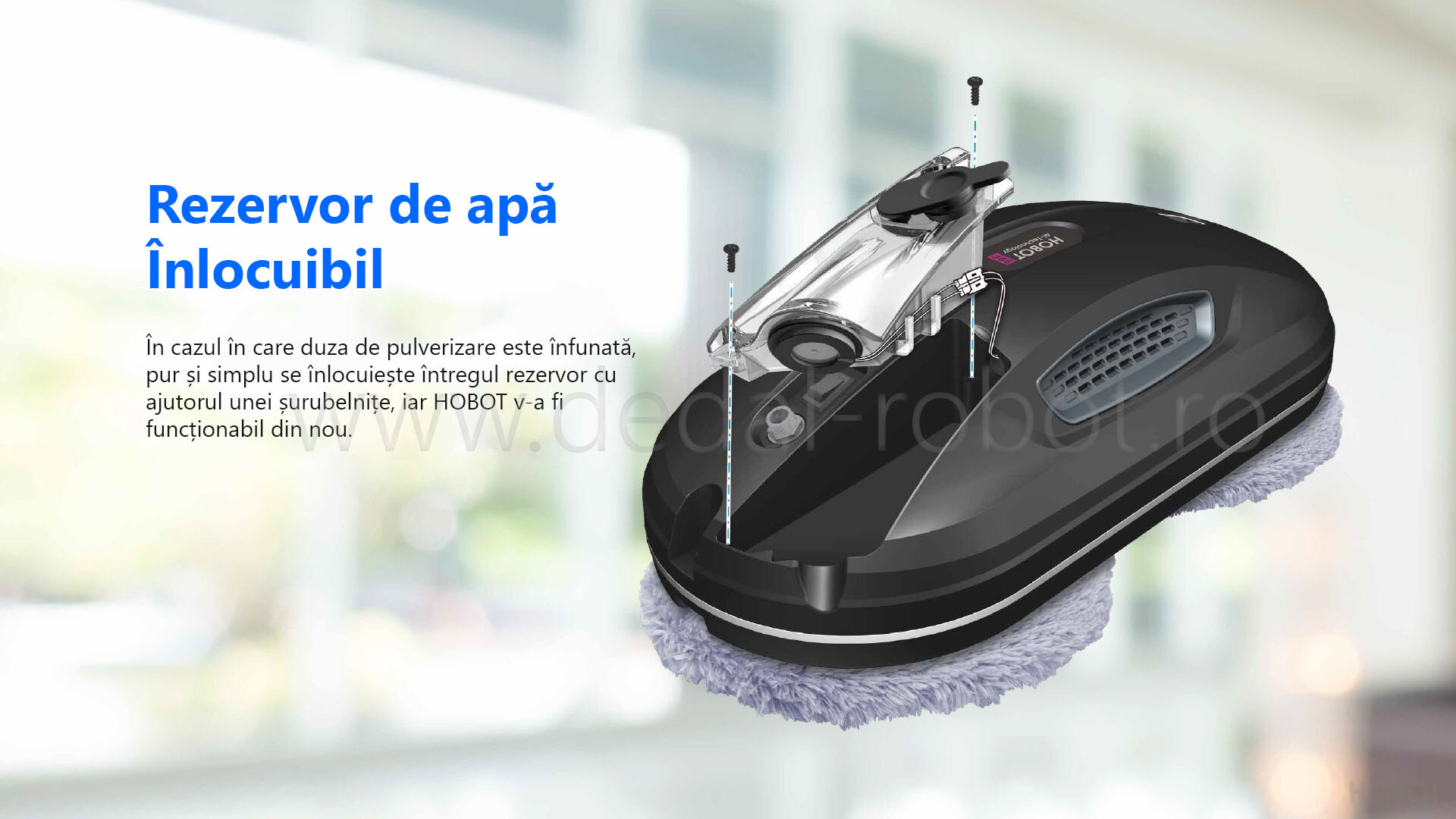 * Folositi doar apa sau detergent specializat pentru robotii de ferestre HOBOT pentru a evita înfundarea duzelor!