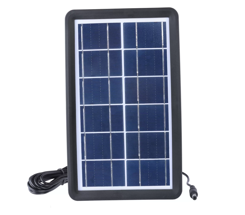 Sistemul cu incarcare solara pentru alimentare si iluminare este solutia ideala pentru situatiile in care nu dispuneti de energie electrica. Fie ca sunteti intr-o zona izolata, in camping sau in timpul unei pene de curent, kit-ul solar va ofera toate facilitatile de care aveti nevoie: iluminat portabil ,prin intermediul celor 3 becuri cu LED-uri SMD si incarcare telefoane mobile si alte dispozitive de la acumulatorul de 6V 4Ah inclus in sistem.
