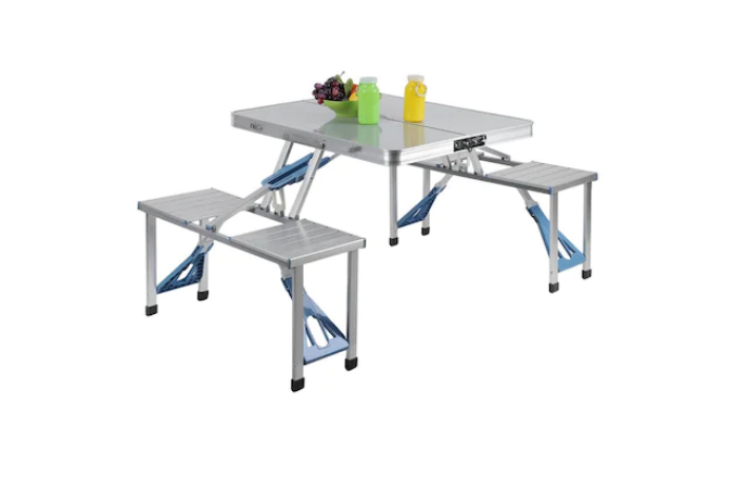 Set Masa De Camping Cu 4 Scaune Din Aluminiu, Tip Valiza, Pliabila, Scaune Sarcina Maxima 100 Kg, Curatare Usoara, Aluminiu