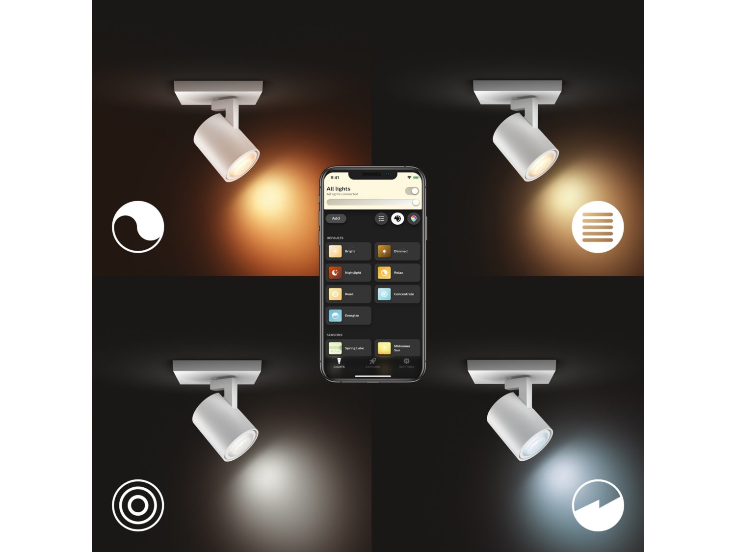 Aceste becuri si instalatii de iluminat ofera diferite nuante de lumina alba calda pana la rece. Datorita reglabilitatii complete de la lumina stralucitoare la lumina de veghe estompata, puteti regla luminile la luminozitatea si nuanta perfecte pentru necesitatile dvs. zilnice.