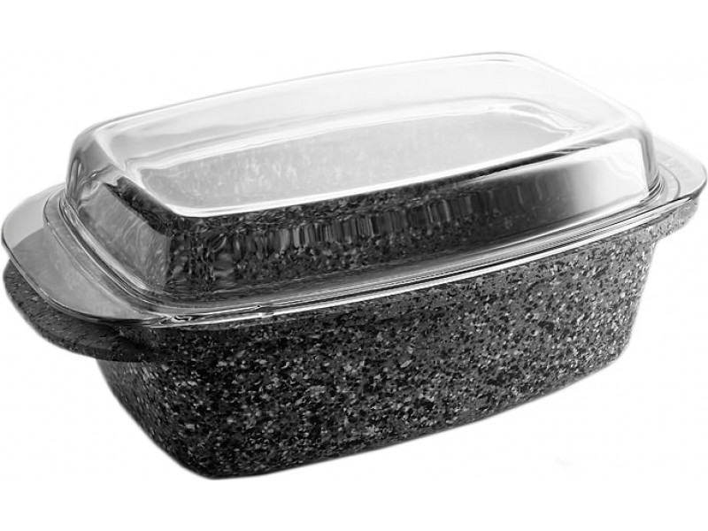 Tava Cu Capac Din Sticla , Interior Din Marmura, Dimensiuni 32x21x11cm , Temperatura De Utilizare -20 Pana La +220 ° C, 3 Straturi, Culoare Negru
