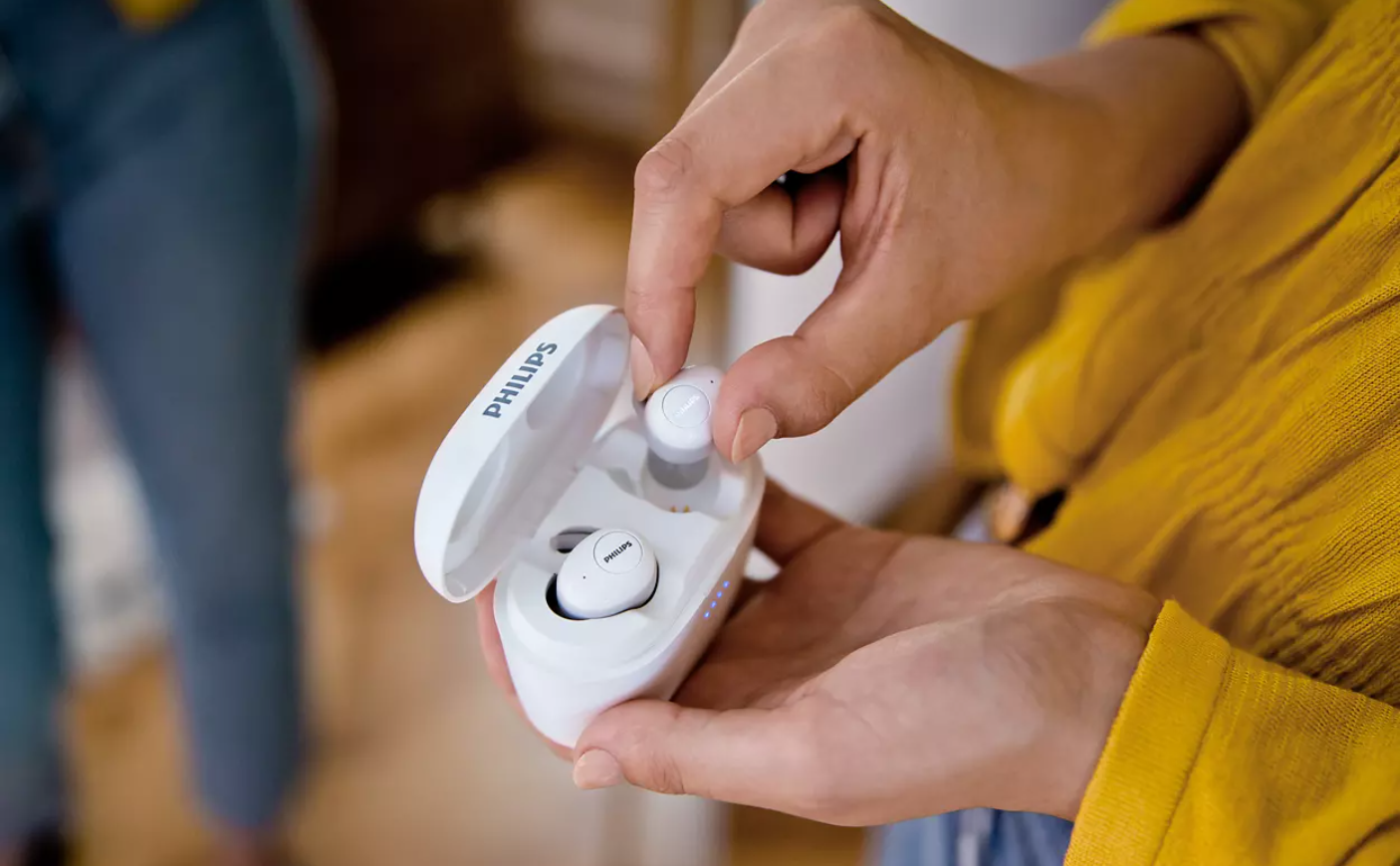 Casti Philips True Wireless Intraauriculare, Conexiune Prin Bluetooth 5.0, Difuzoare De 6mm, Design Inchis, Microfon Incorporat, Raza 10 M, Incarcare 2 H, Alb