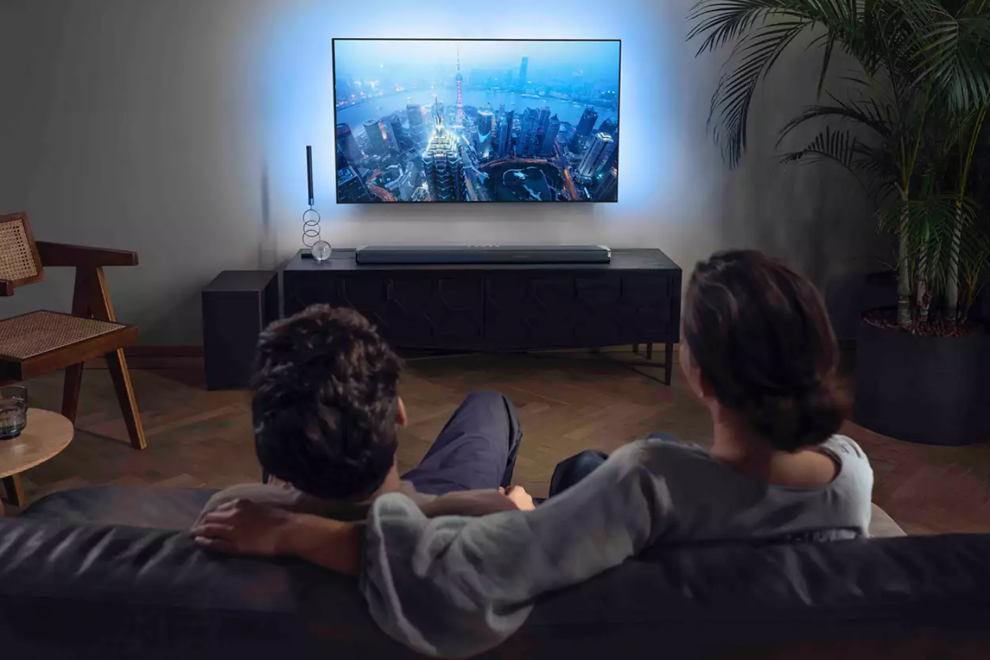 Obtine experienta Dolby Atmos completa cu difuzoarele orientate in sus ale acestui soundbar. Filmele si serialele preferate vor suna incredibil de realist, sunetul propagandu-se deasupra si in jurul tau. Daca vizionezi continut non-Atmos, soundbarul comuta la Dolby Surround.
