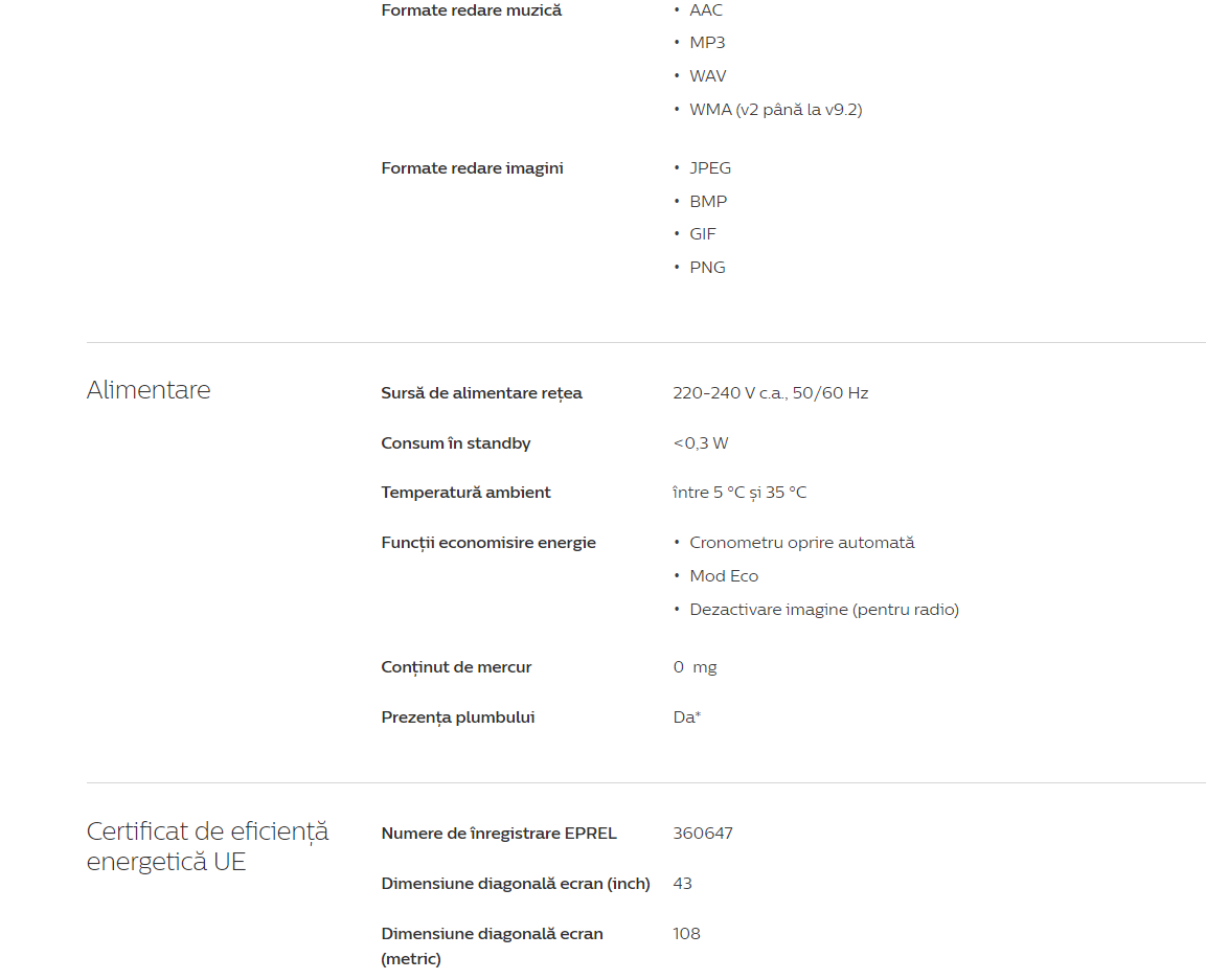 Televizorul de la Philips, cu un aspect subtire si modern, este potrivit oricarui spatiu de locuit. Puteti vedea acum chiar si detaliile fine din fiecare scena, atat in scenele luminioase cat si intunecoase datorita rezolutiei Full HD. Diagonala de 108 cm va permite sa vedeti imaginea in ansamblu, totul devenind foarte real pe un ecran mai mare. Aveti acces facil la continut si control simplificat printr-o singura telecomanda. Mai multe conexiuni si compatibilitati datorita celor 9 port-uri si a tehnologiilor wireless integrate, ce va permit conectarea cu numeroase dispoztive apartinand si altor marci.