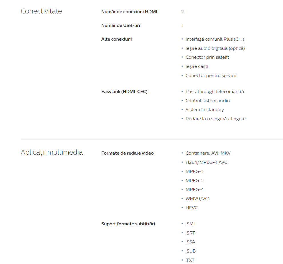 Televizorul este compatibil cu mai multe dispozitive prin intermediul conectivitatii wireless si interfetei sale variate, precum: